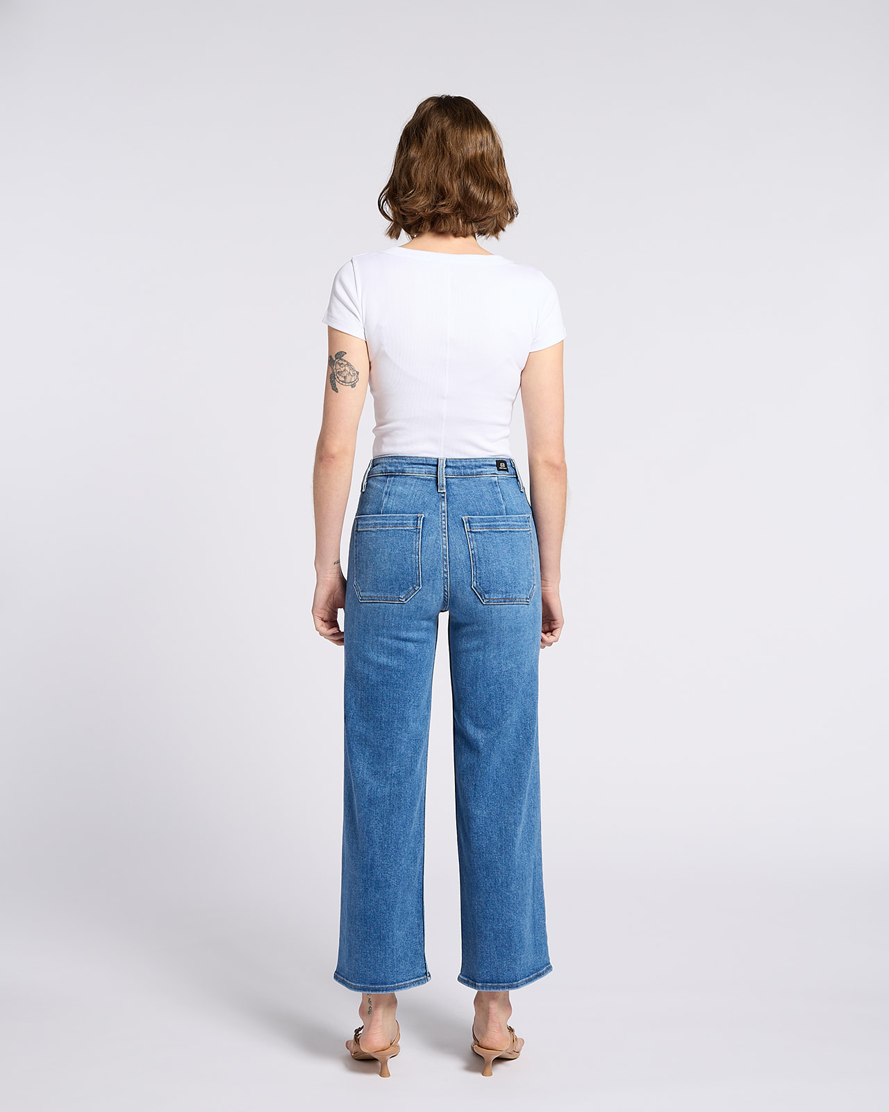 The Sailor Patch Pocket Jean features a clean, high-rise silhouette with signature front patch pockets. The structured wide leg adds a polished look, making this a versatile piece that feels modern yet timeless.
