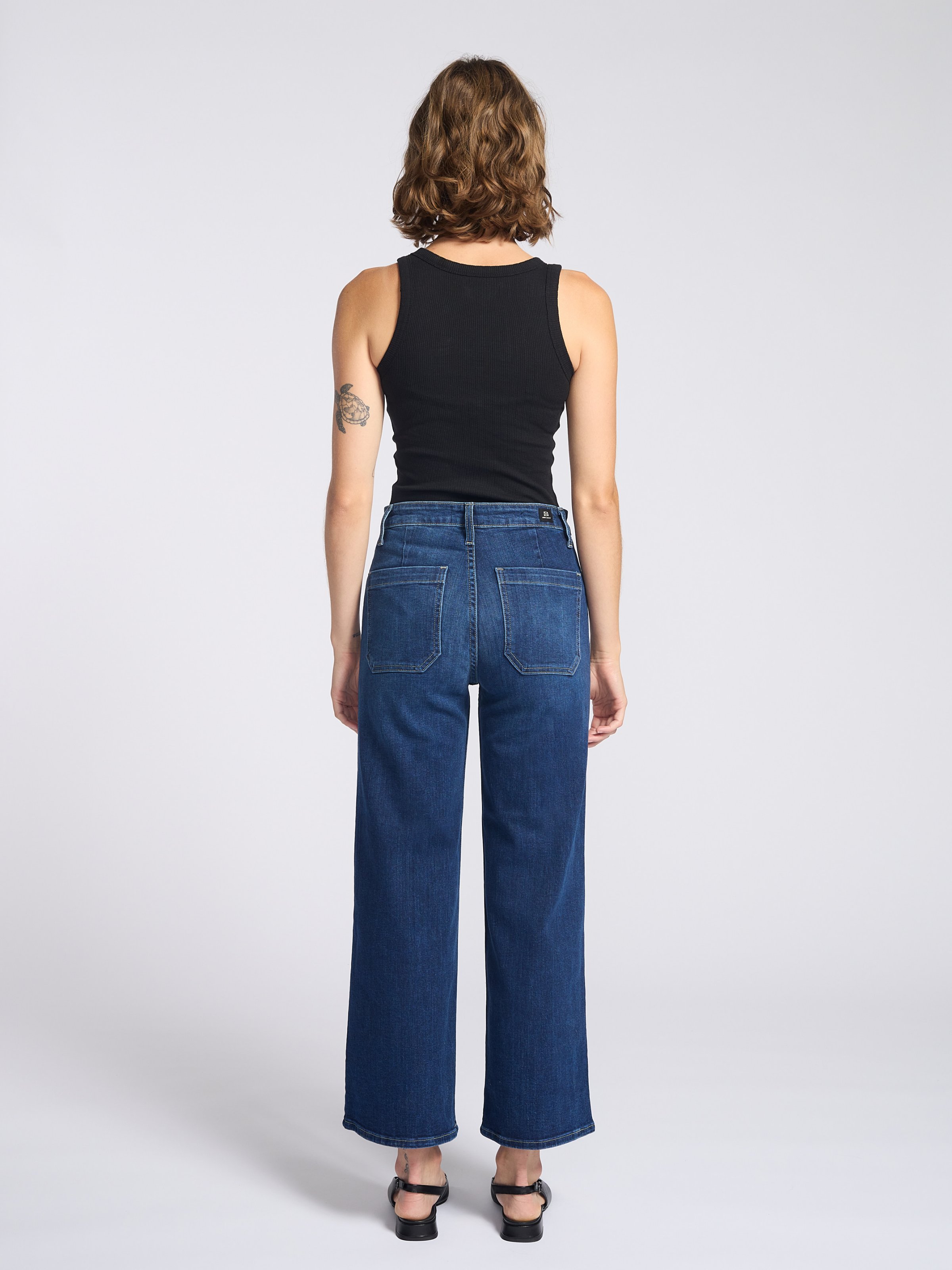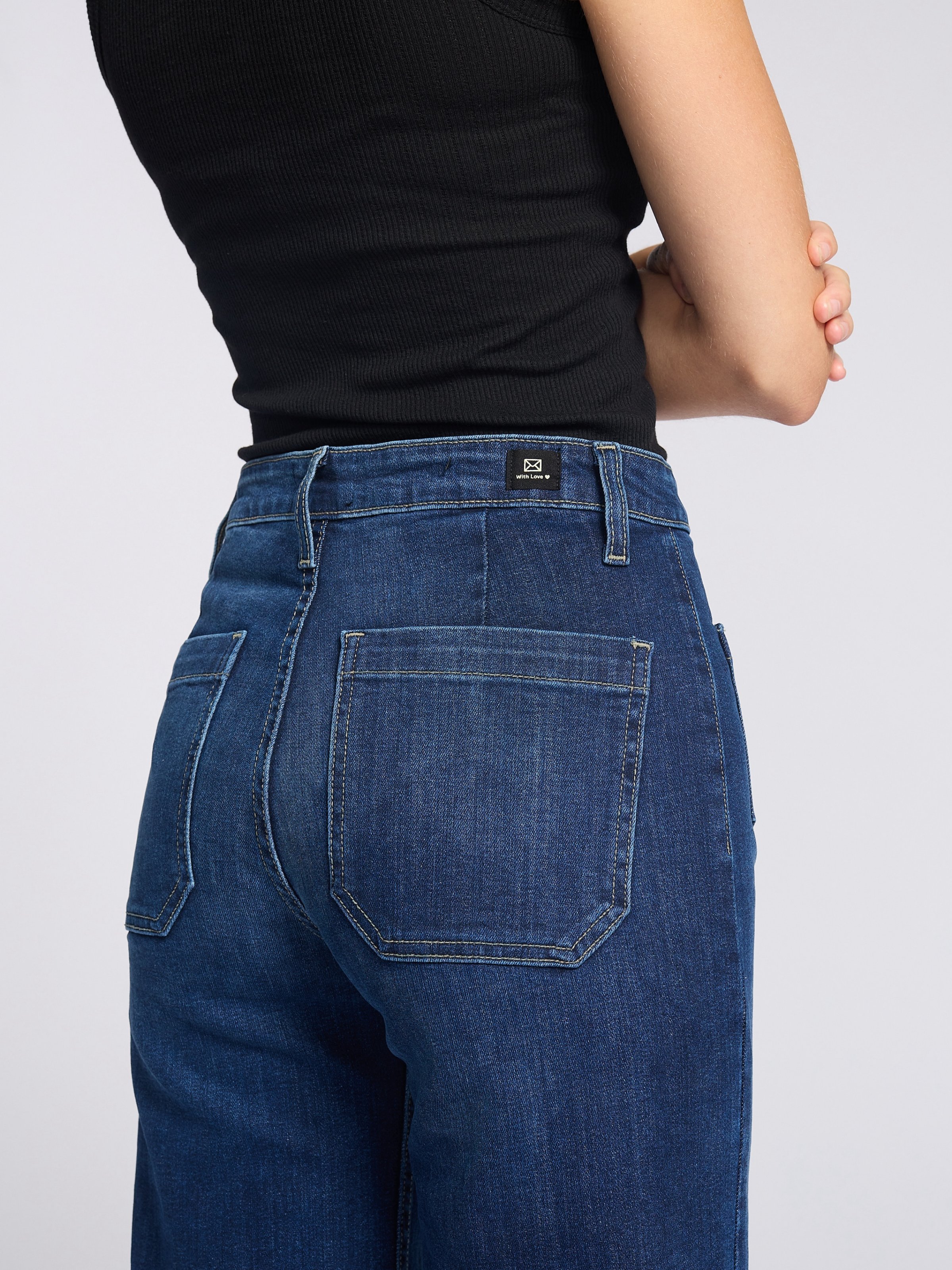 The Sailor Patch Pocket Jean features a clean, high-rise silhouette with signature front patch pockets. The structured wide leg adds a polished look, making this a versatile piece that feels modern yet timeless.